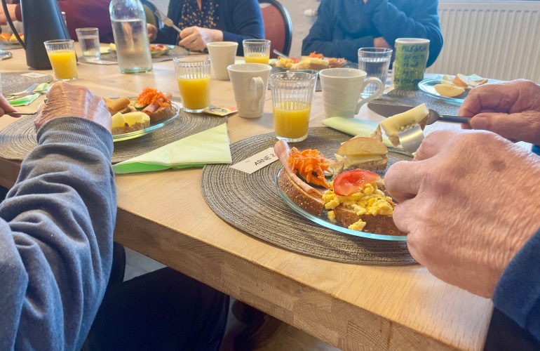 Felles måltider er viktig! Det er også den fysiske aktiviteten, enten vi holder på med styrketrening innendørs, går turer ute, jobber i hagen eller hjelper til med vedhogst. Vi går ei fin tid i møte, og ønsker alle som følger med oss gode dager